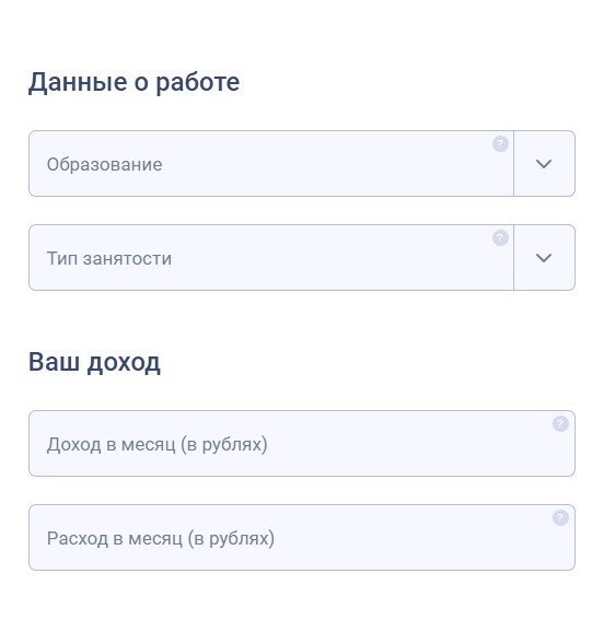Если вы указали, что работаете где-то в организации, то откроются дополнительные поля для заполнения сведений о работе.